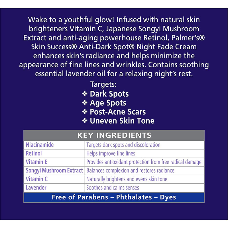 – ضد لک و روشن کننده پوست– يکدست کردن تناژ رنگ پوست– شفافيت و درخشان شدن پوست– موثر در کاهش چين و چروک ريز– تغذيه کننده عميق پوست– بهبود قابليت ارتجاعي پوست– تاثير گذاري کرم بعد 2 هفته– تسکين دهنده و آرامش بخش پوست– خاصيت ضد پيري و حفظ جواني پوست– محافظت آنتي اکسيداني در برابر آسيب راديکال هاي آزاد– مناسب استفاده براي روتين شب– مناسب انواع پوست– مناسب انواع لک ها– مناسب لک هاي بارداري ، آفتاب سوختگي و لک جاي جوش– حاوي 5% نياسيناميد ، رتينول ، قارچ Songyi ، ويتامين E و C و لاوندر– حاوي کمپلکس روشن کننده پوست– فاقد پارابن ، فتالات و رنگ هاي مصنوعي– فاقد تست حيواني– وزن 75 گرم– محصول اورجينال کشور آمريکا