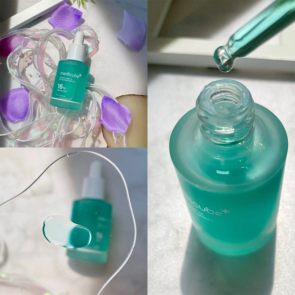 ۱۶٪ اسید آزلائیک برای تنظیم تولید سبوم، کاهش باکتری های مولد آکنه، پاکسازی منافذ و جلوگیری از جوش های جدیدسرامید NP برای تقویت سد دفاعی پوست، حفظ رطوبت، جلوگیری از خشکی و محافظت در برابر عوامل محیطی عصاره های گیاهی سنتلا آسیاتیکا، بابونه و چای سبز با خواص ضد التهابی و آنتی اکسیدانی نیاسینامید برای یکنواختی رنگ پوست، تسکین التهاب، کنترل ترشح چربی و بهبود منافذ بازترکیبات آرام بخش برای کاهش التهاب، قرمزی و احساس ناراحتی در پوست مستعد جوشکمپلکس BB16؛ مجموعهای از ترکیبات گیاهی و مواد مغذی برای تسکین و تغذیه پوست اثر ضد باکتریایی قوی برای کنترل جوش های مزاحم و پیشگیری از آکنه های جدیدلایه برداری ملایم و ترکیبات فعال برای پوست صافتر و منافذ کمتر قابل مشاهده اسید پانتوتنیک و پانتنول برای آبرسانی، ترمیم سد دفاعی و تسکین تحریکاتلایه برداری ملایم برای پاکسازی سلول های مرده و بهبود بافت پوستفرمول مؤثر برای بهبود روزاسه، جای جوش، لک های تیره و قرمزی